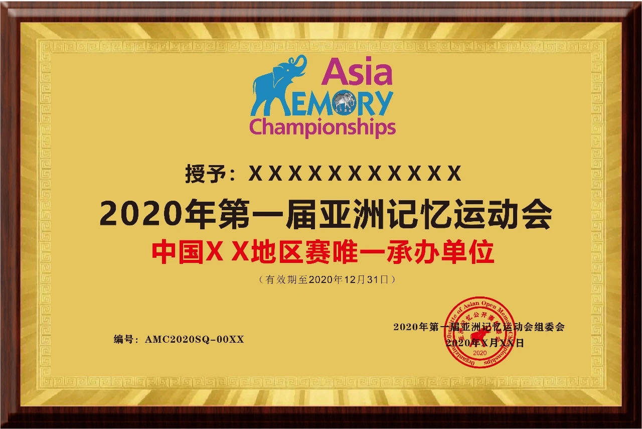 2020年第一届亚洲记忆运动会指定训练机构授权▼